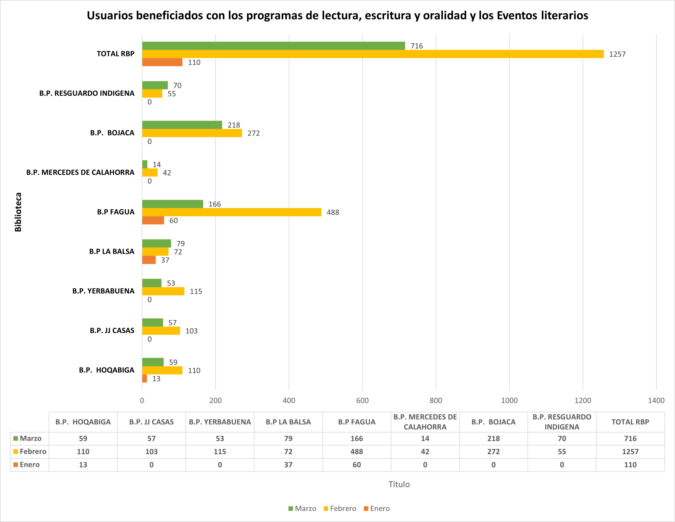 Usuarios beneficiados con los programas de lectura, escritura y oralidad y los Eventos literarios